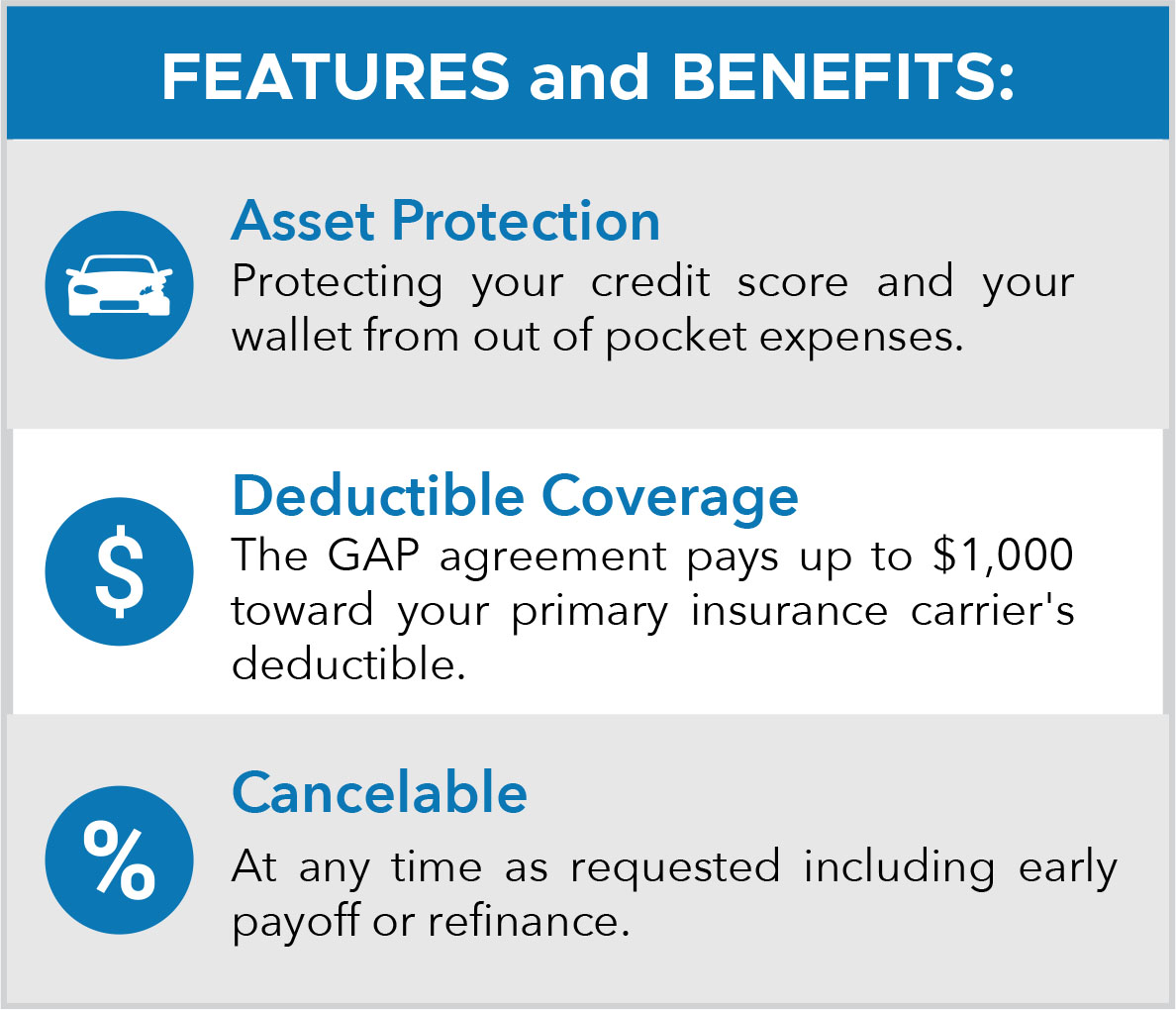 *PLEASE NOTE: The entire gap may not be waived and you may be responsible for some part of the finance agreement's outstanding balance. Refer to the actual GAP agreement for more information.