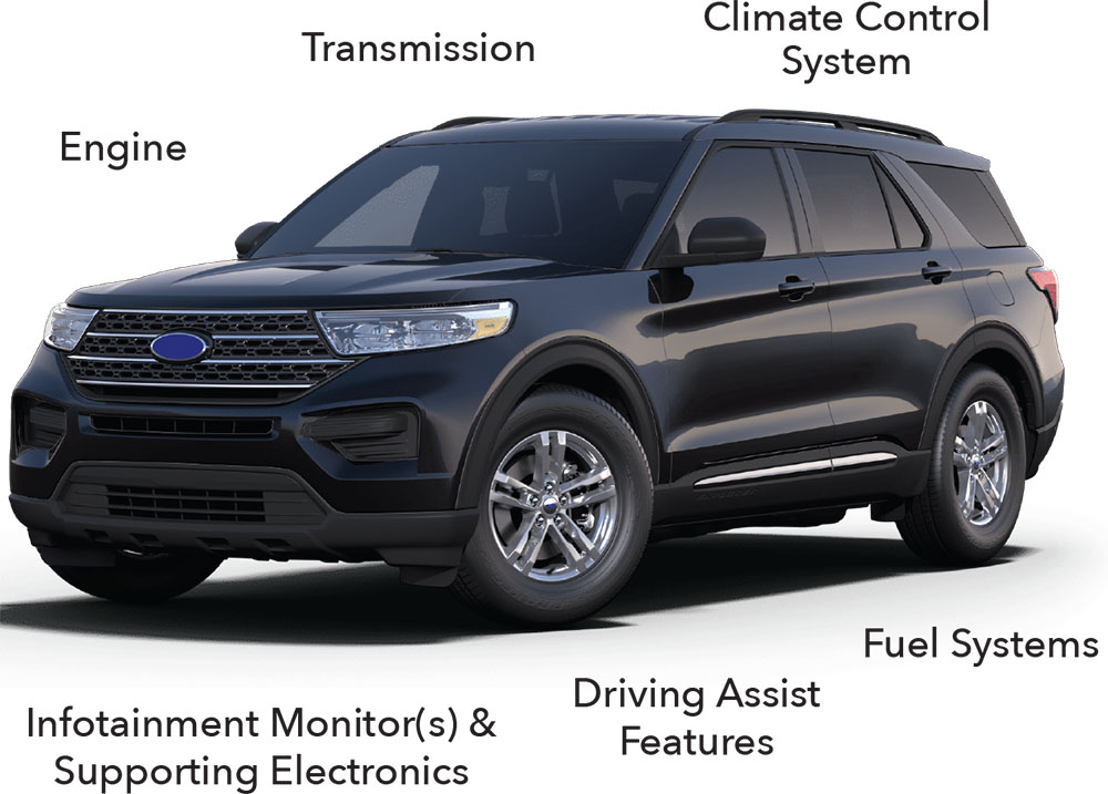 The Premier Essential VSC offers exclusionary coverage that provides for the repair of any mechanical or electrical component which experiences a breakdown except for items explicitly excluded from coverage.* This includes expensive and critical vehicle systems including: